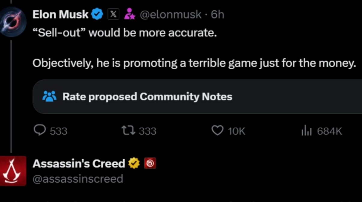 Elon Musk Mengejek Assassin’s Creed Shadows, Ubisoft Membalas Ejekannya from www.reatrixweb.com