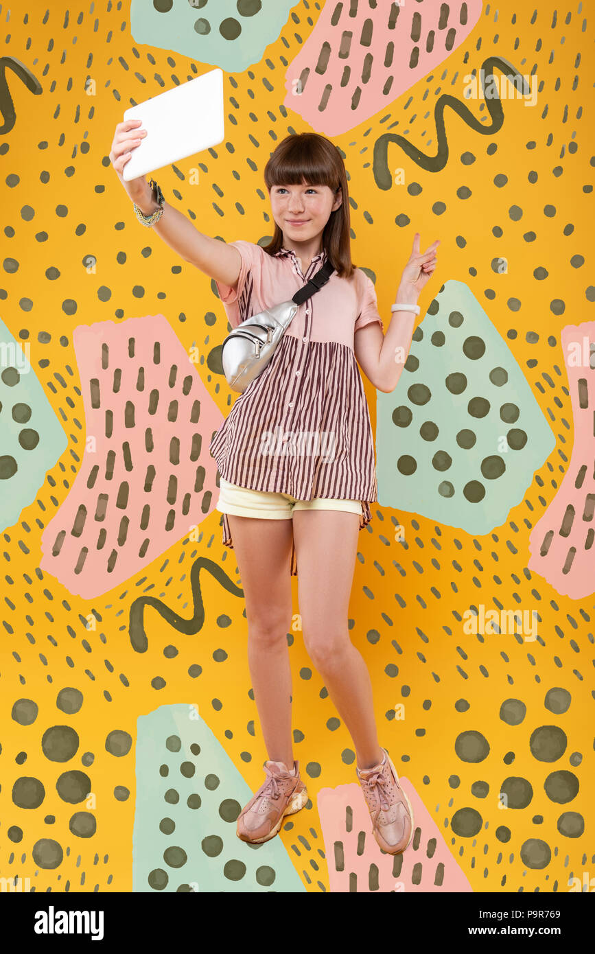 Source: pmasacxno.pages.dev Pretty Teenage Girl Smiling and Posing for a Selfie Stock Image Image of emotion, colorful , That way, you won't squint, and the sun will light your hair up like a halo. The Classic Rule-of-Thirds Selfie; This one may seem simple, but it is the base of all great selfie poses